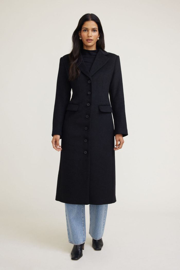 This wool-blend coat is made with a form-flattering cinched look that will have you cutting a striking figure while staying warm. Style it over a T shirt and jeans for an elevated everyday look.